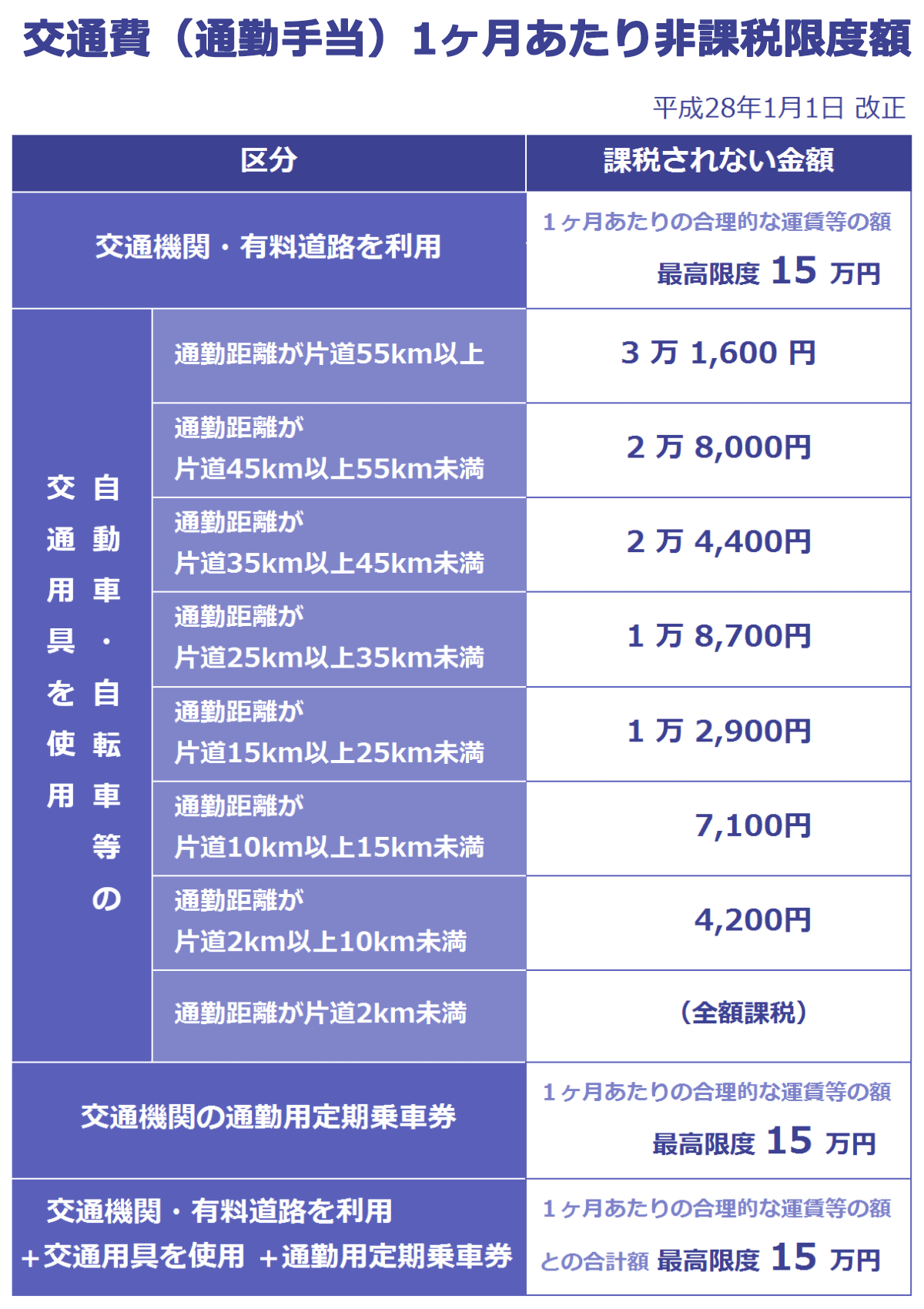 通勤手当の非課税限度額の変更