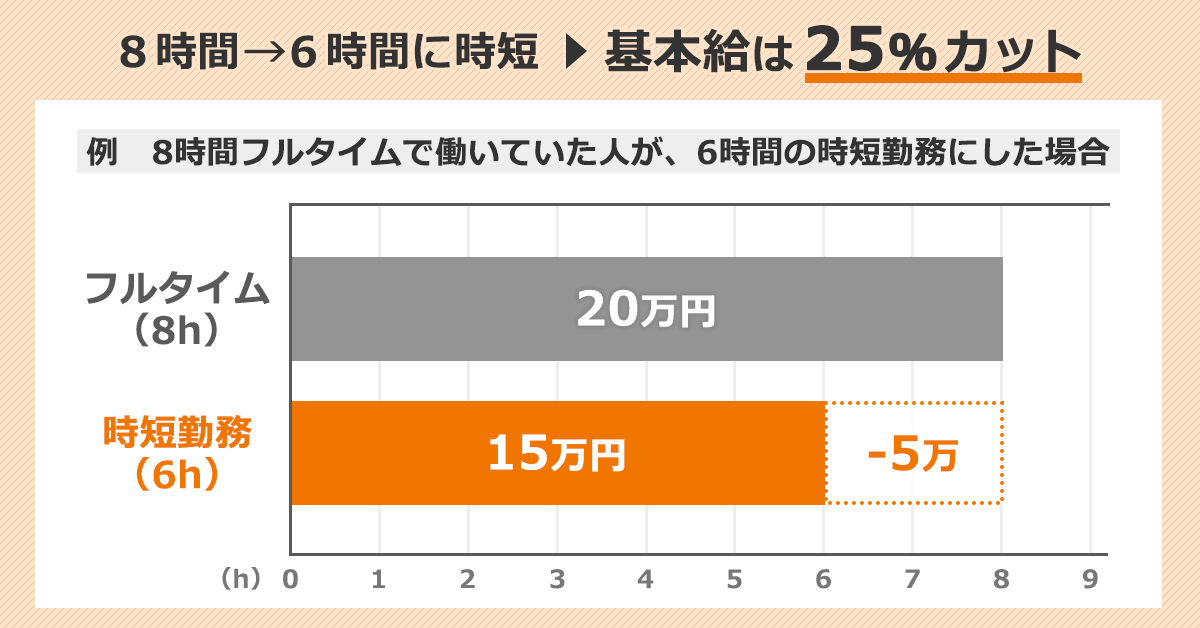 - 例として、1時間の給料が1,000円で、勤務時間が8時間から6時間に短縮された場合、給料は8,000円から6,000円に減少します。