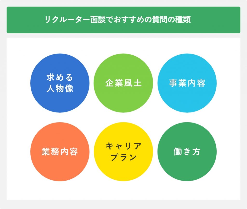 リクルーターに聞くことができる内容は多岐にわたりますが、主に 会社の文化、仕事の内容、キャリアパス などが含まれます。以下で具体的な内容を詳しく説明します。