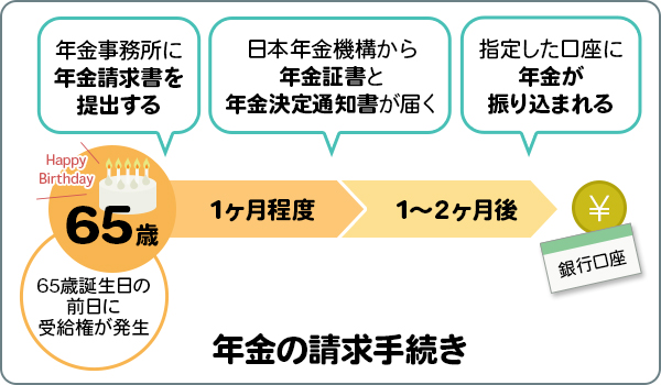- 申請後、約2ヵ月後に初めての年金支給が行われる。