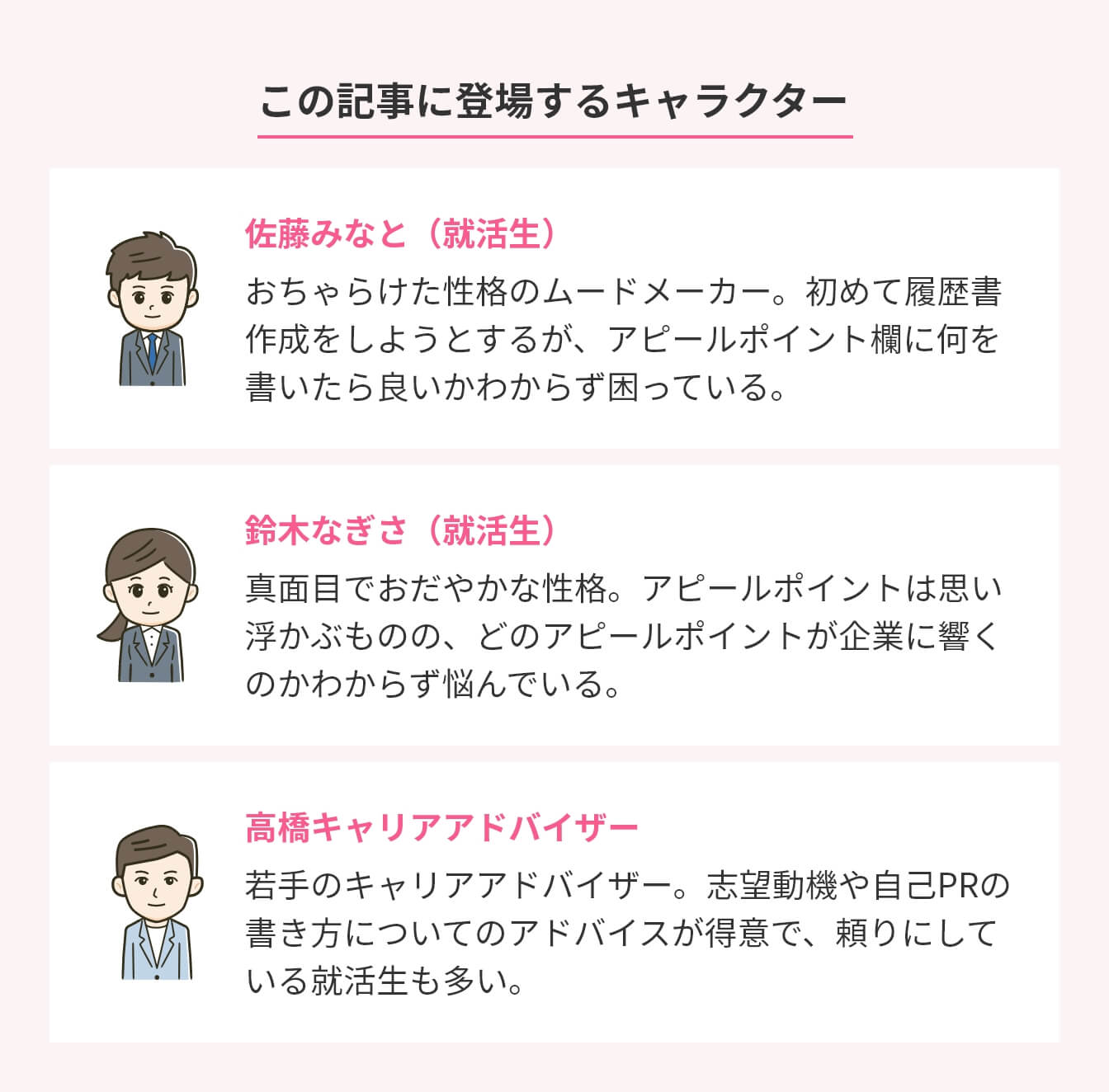 自己PRの書き方 | 過去の経験やエピソードを使い、具体的な事例を挙げて強みをアピール。 |