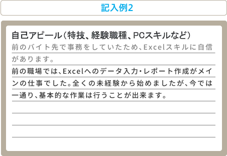 - 相手のニーズに合わせる:応募先の企業や店舗のニーズに合わせて自己PRを書く。例えば、接客業ならコミュニケーション能力や笑顔を強調する。