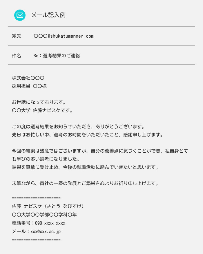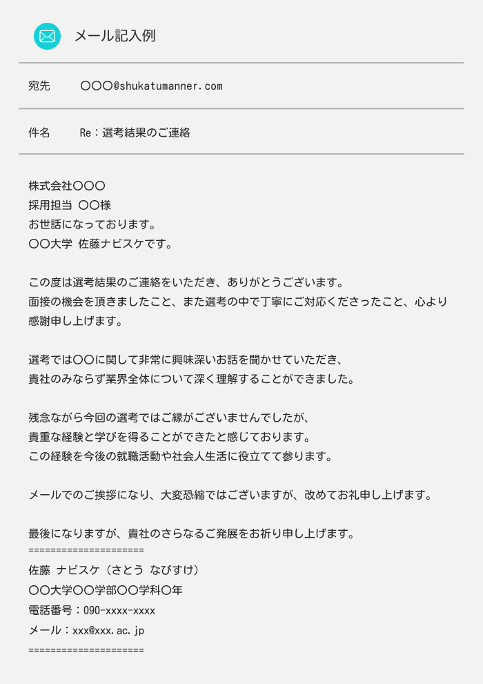 不採用通知への返信のサンプルテンプレート