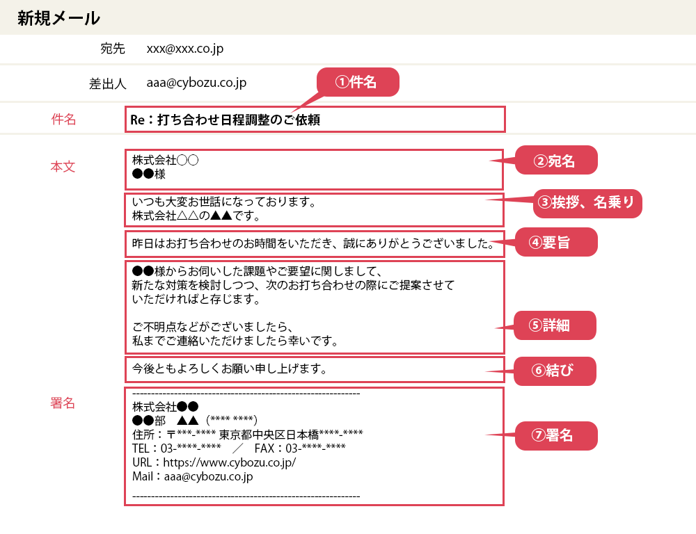 - メールの最後には、結語と署名を記載して、全体のバランスを整えます。