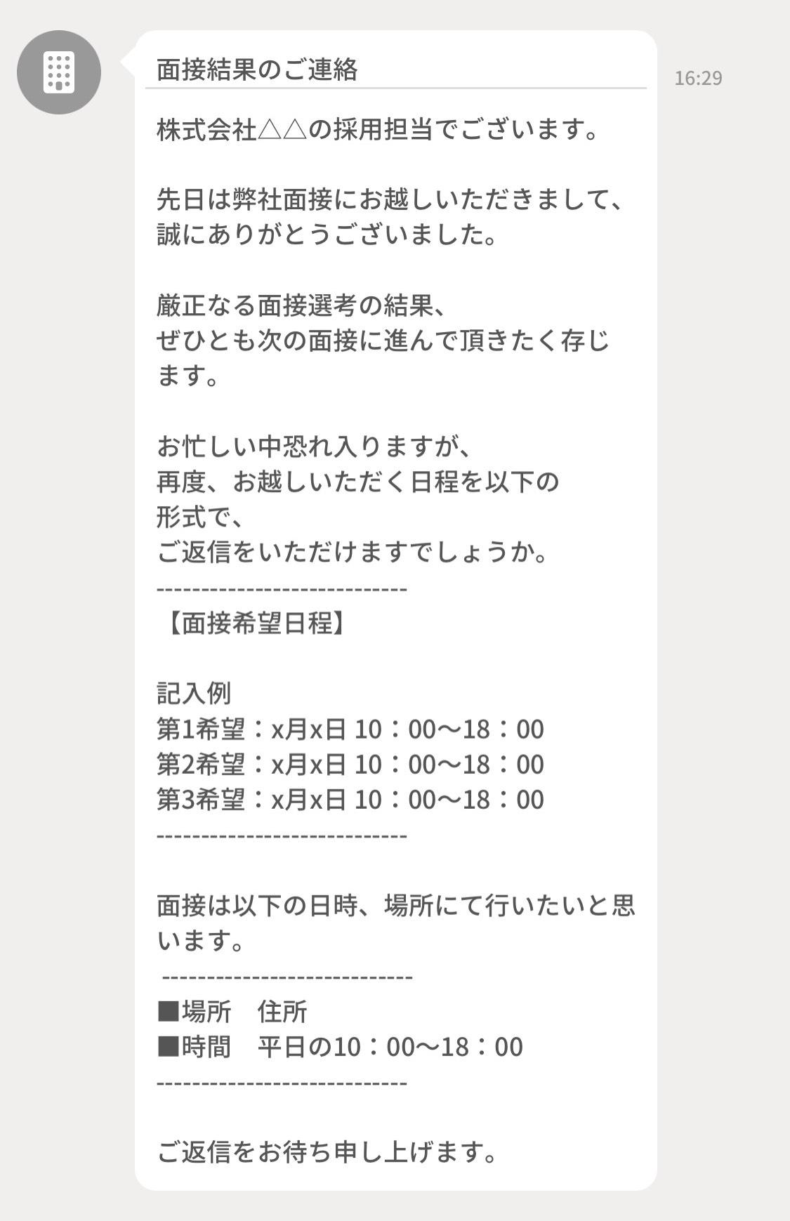 - メールの件名には「一次選考通過のお礼」と明確に記載する。