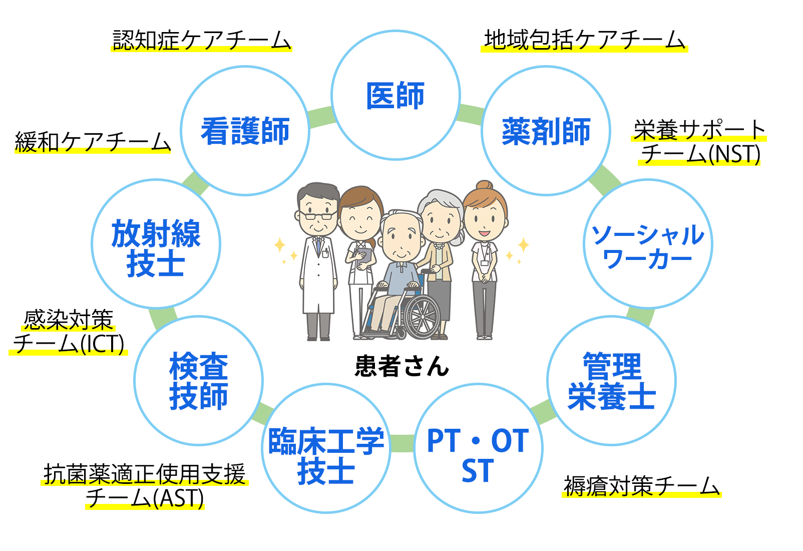 医療業界には多様な専門職がおり、それぞれが重要な役割を担っています: