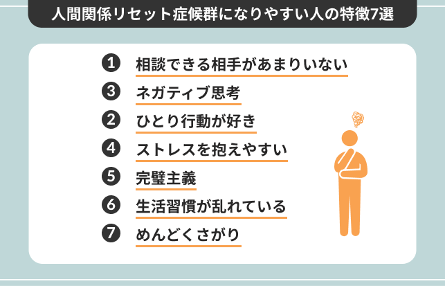 人間関係リセット症候群の人が示す主な特徴は以下の通りです: