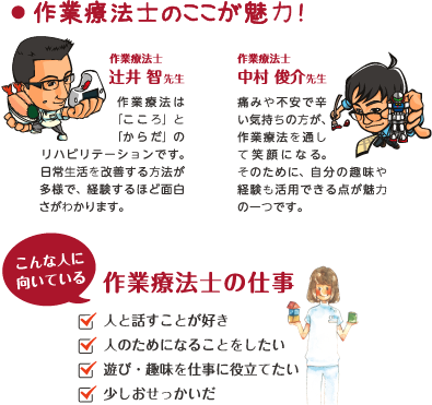 精神保健 | 精神保健作業療法士 | うつ病や統合失調症などの精神疾患の患者様の社会参加の促進 |