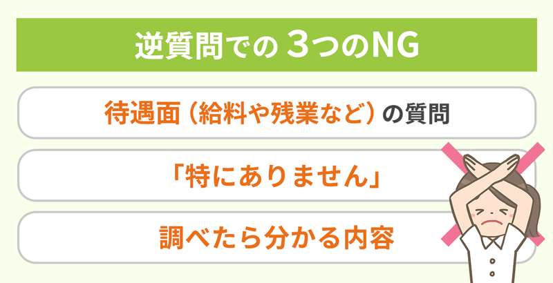 逆質問をする際には、無作為な質問や conseguenzaを避けることが重要です。質問は事前に準備し、面接の内容に沿った具体的で関連性のあるものを選ぶようにしましょう。また、質問の数もほどほどにし、面接官に対して尊重の気持ちを示すことが大切です。逆質問は、自己アピールの手段であり、面接官との双方向のコミュニケーションを促進するためのツールであることを意識してください。