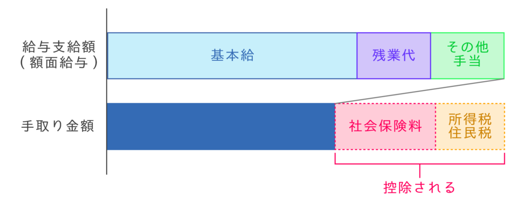 基本給と手当の税金の計算では、基本給と手当の両方が総支給額として扱われ、その総額から税金が計算されます。具体的には、基本給と手当を合算した総支給額から各種控除(基礎控除、社会保険料控除、扶養控除など)が引かれた後の金額が課税対象となります。この課税所得額に対して、所得税や住民税が計算され、それぞれの税率に応じて税金が徴収されます。