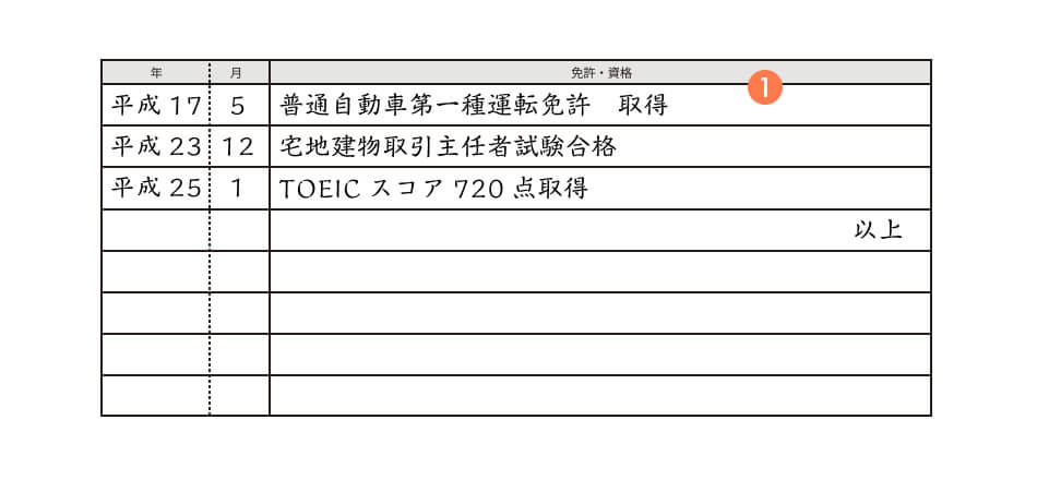 免許・資格の記載方法の基本 資格名、取得年月、発行機関を正確に記入