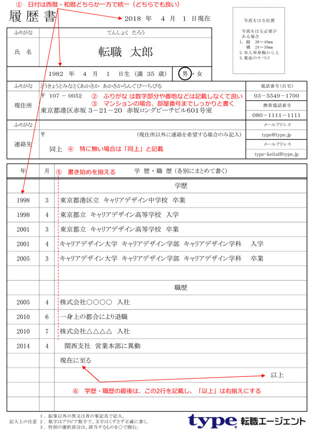 手書きの履歴書を書くときの注意点は、以下の通りです: