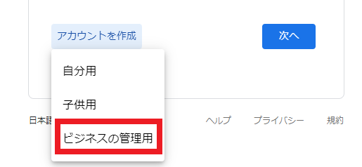 - ご使用のスマートフォンやパソコンで、Googleのアカウント作成ページを開きます。