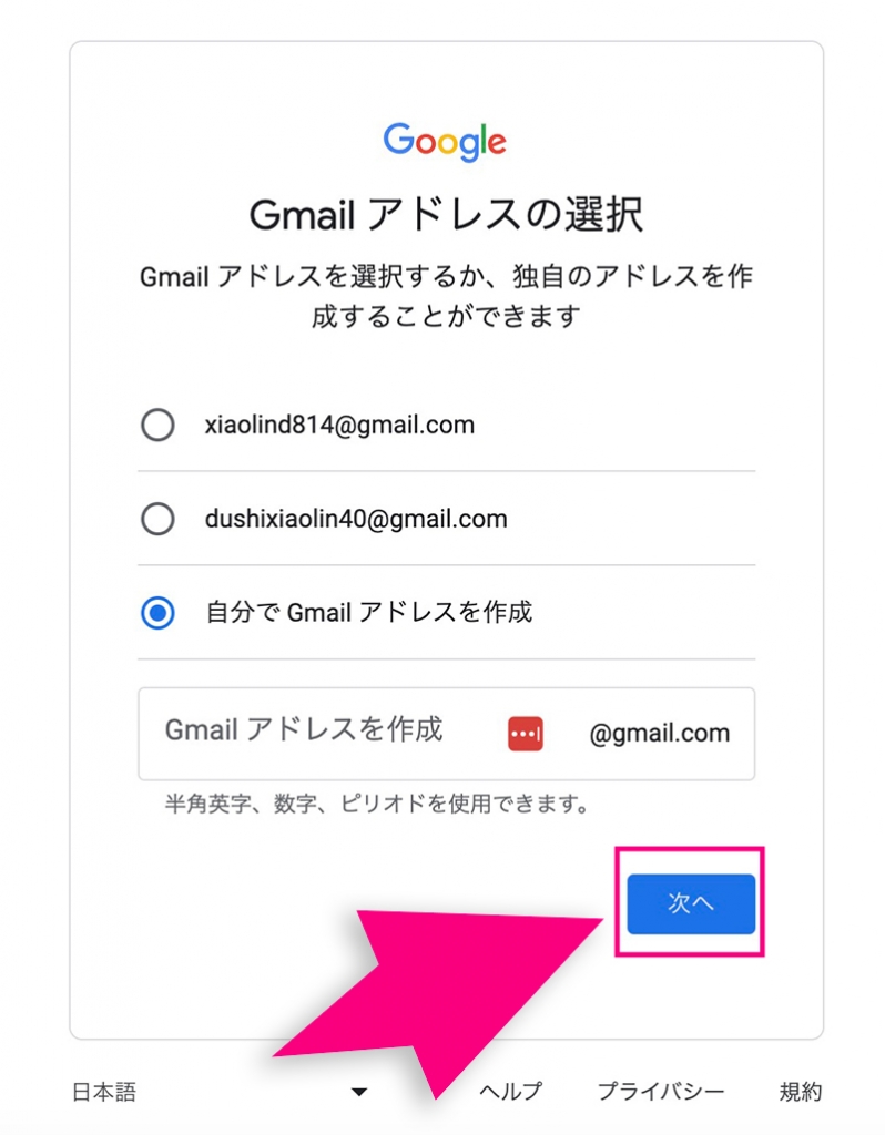Gmailのアドレスを取得するにはどうすればいいですか?