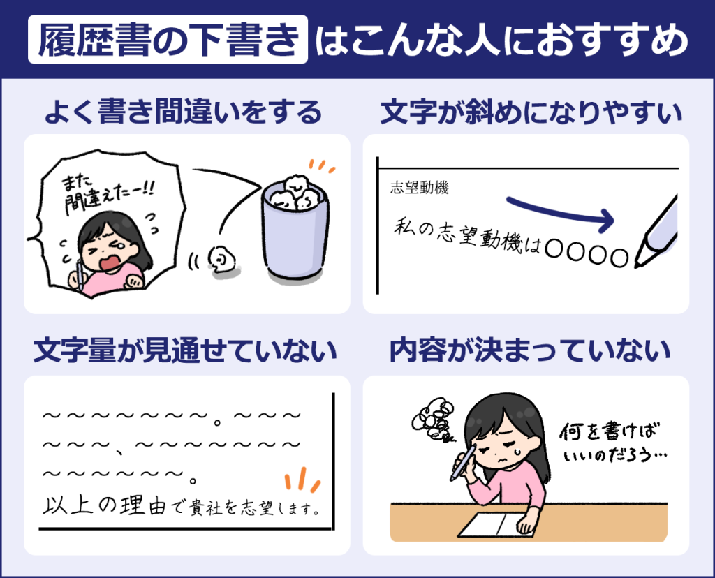 - 原稿の作成:履歴書の下書きは、まず下書き用紙に書き、確認してから正式な履歴書に記載します。