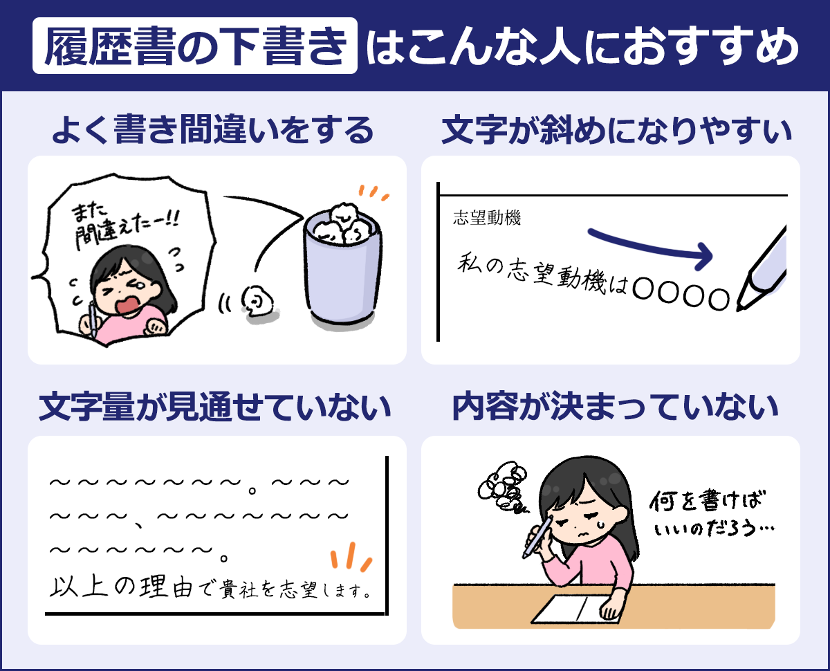 履歴書の下書きは、内容の確認と修正に非常に役立ちます。下書きをすることで、以下の点が改善されます。