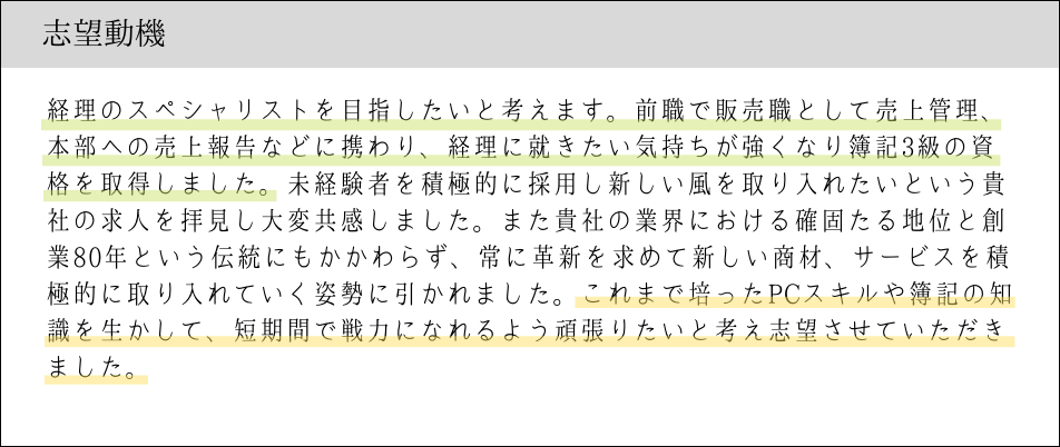 未経験の仕事に志望動機をアピールするFor the job I have never experienced, how to express my aspirationsの例文集