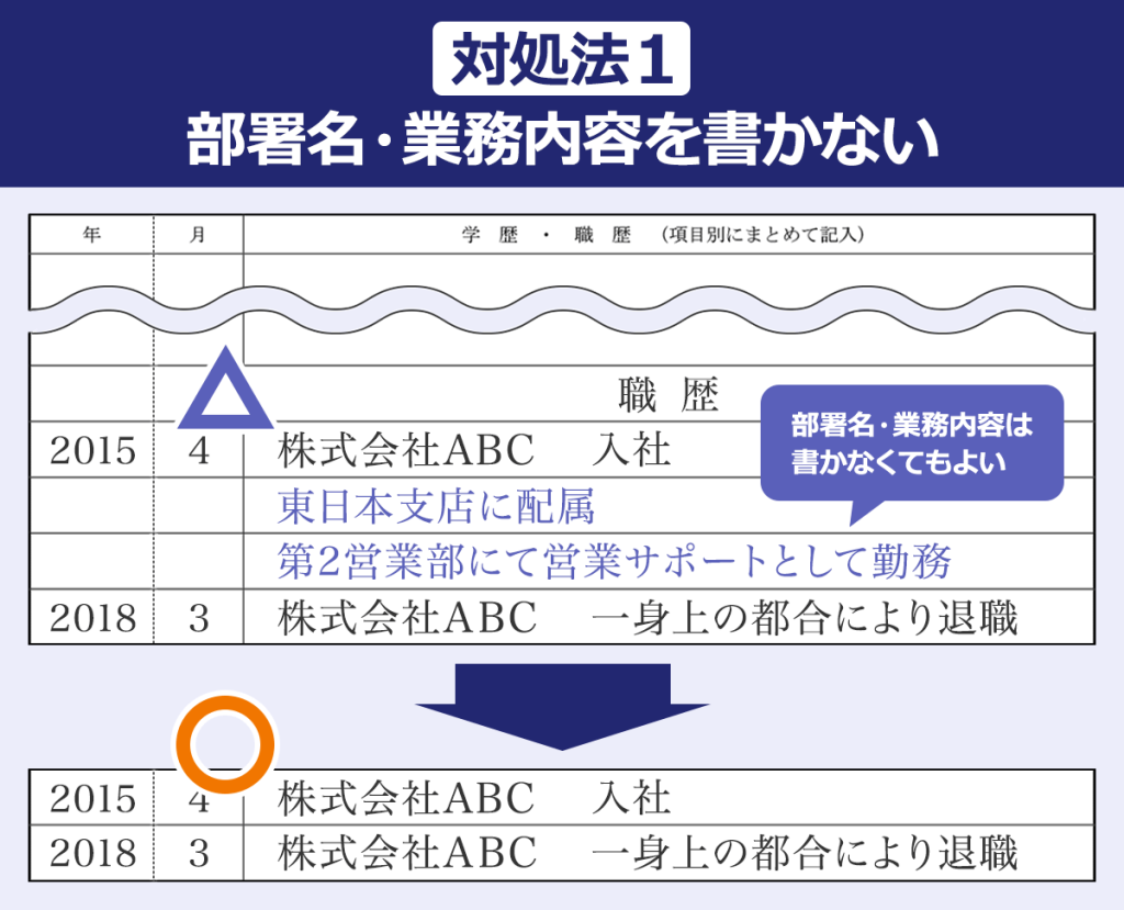関連性の低い職歴は省略する | 求職先との関連性が高い経験に絞る |