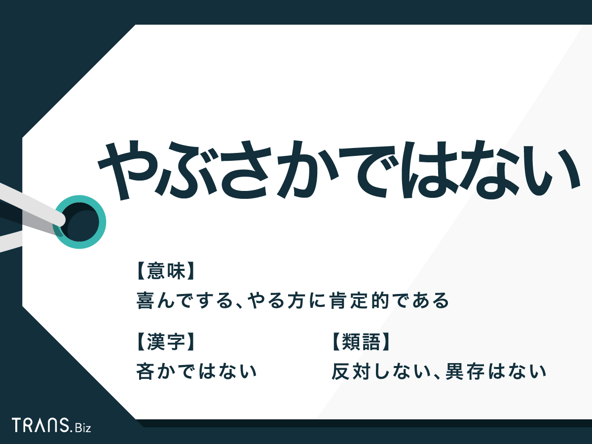 やぶさかではない | 反対するつもりは全くない、異論があるわけではない |