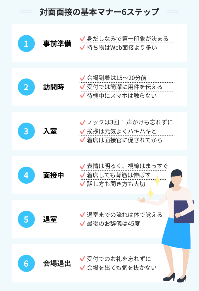 面接当日のマナーは非常に重要です。以下にいくつかの注意点を挙げます。