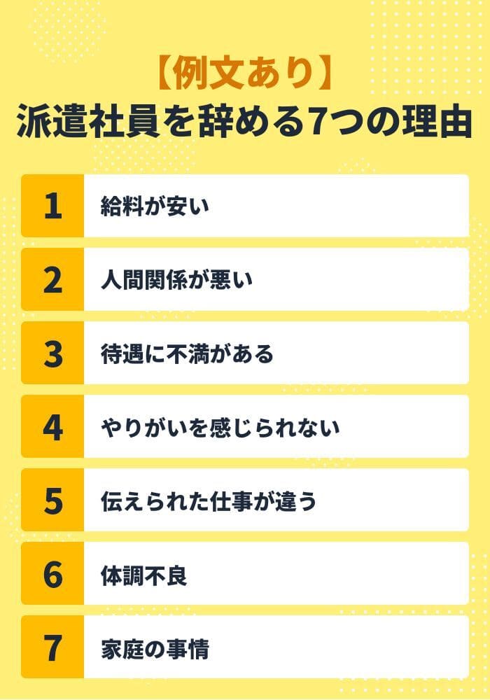 派遣の仕事を辞めたい理由は人それぞれですが、一般的には以下の理由が多いです。