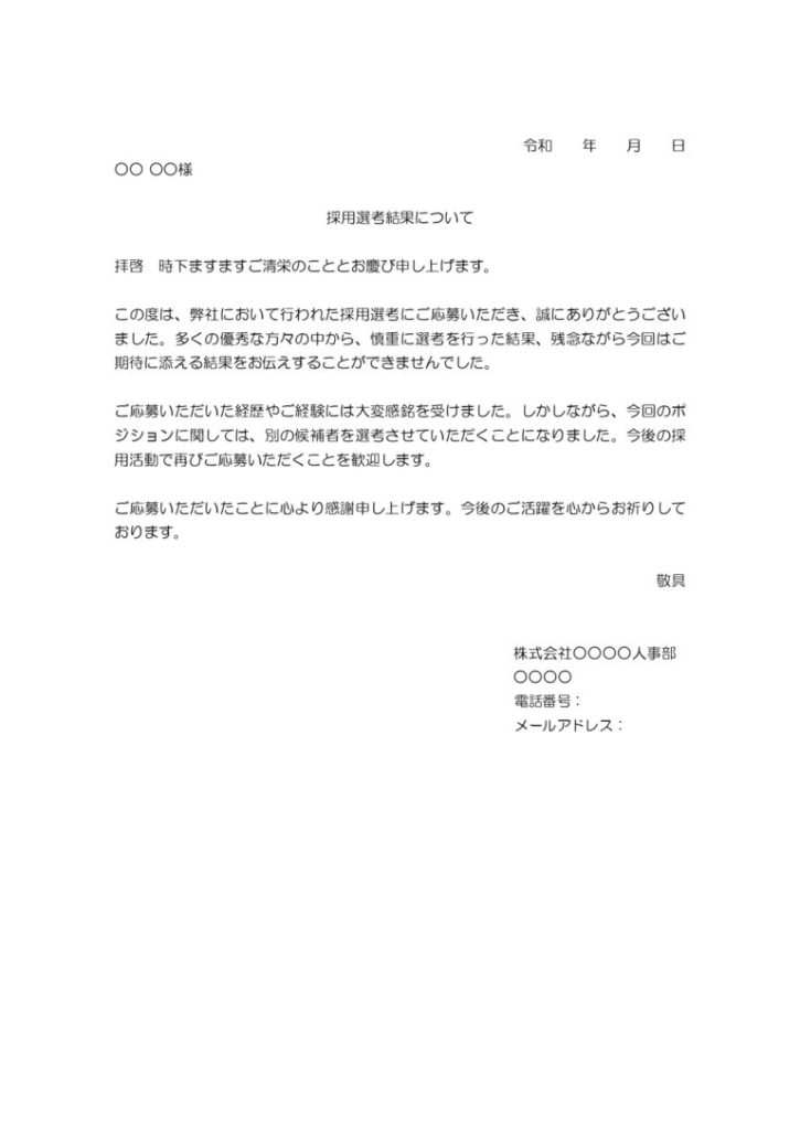 - 人選が終わるとその後の応募者には連絡しない