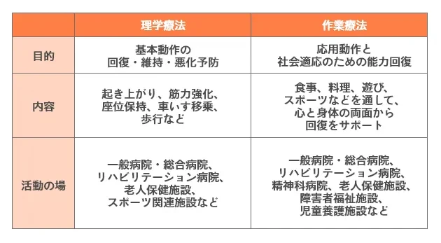 理学療法士と作業療法士の仕事内容にはどのような違いがあるか?