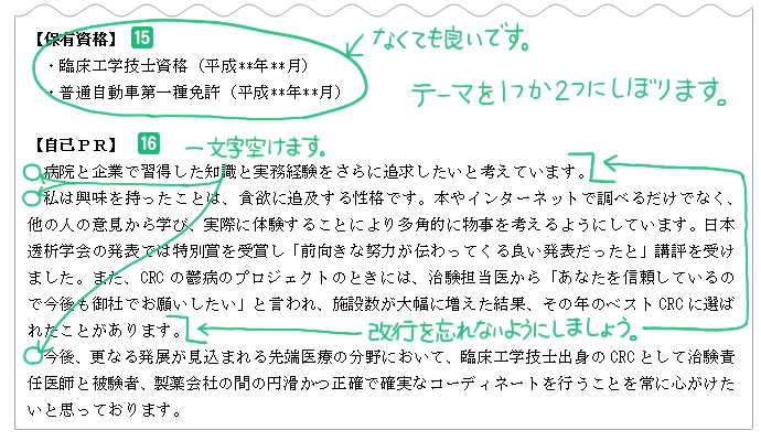 自己PRを作成する際には、自分の長所や経験、それに基づいた具体的なエピソードを紹介することが大切です。例えば、チームで働く経験を通じて得たコミュニケーション能力や、問題解決能力、また医療機器に興味を持ったきっかけや関連するボランティア経験などを挙げることができます。また、これらの経験がなぜ臨床工学技士を目指すのに役立つのか、具体的に説明することが重要です。自己PRは、あなたの個性と熱意をアピールする絶好の機会なので、自信を持って話すことが求められます。