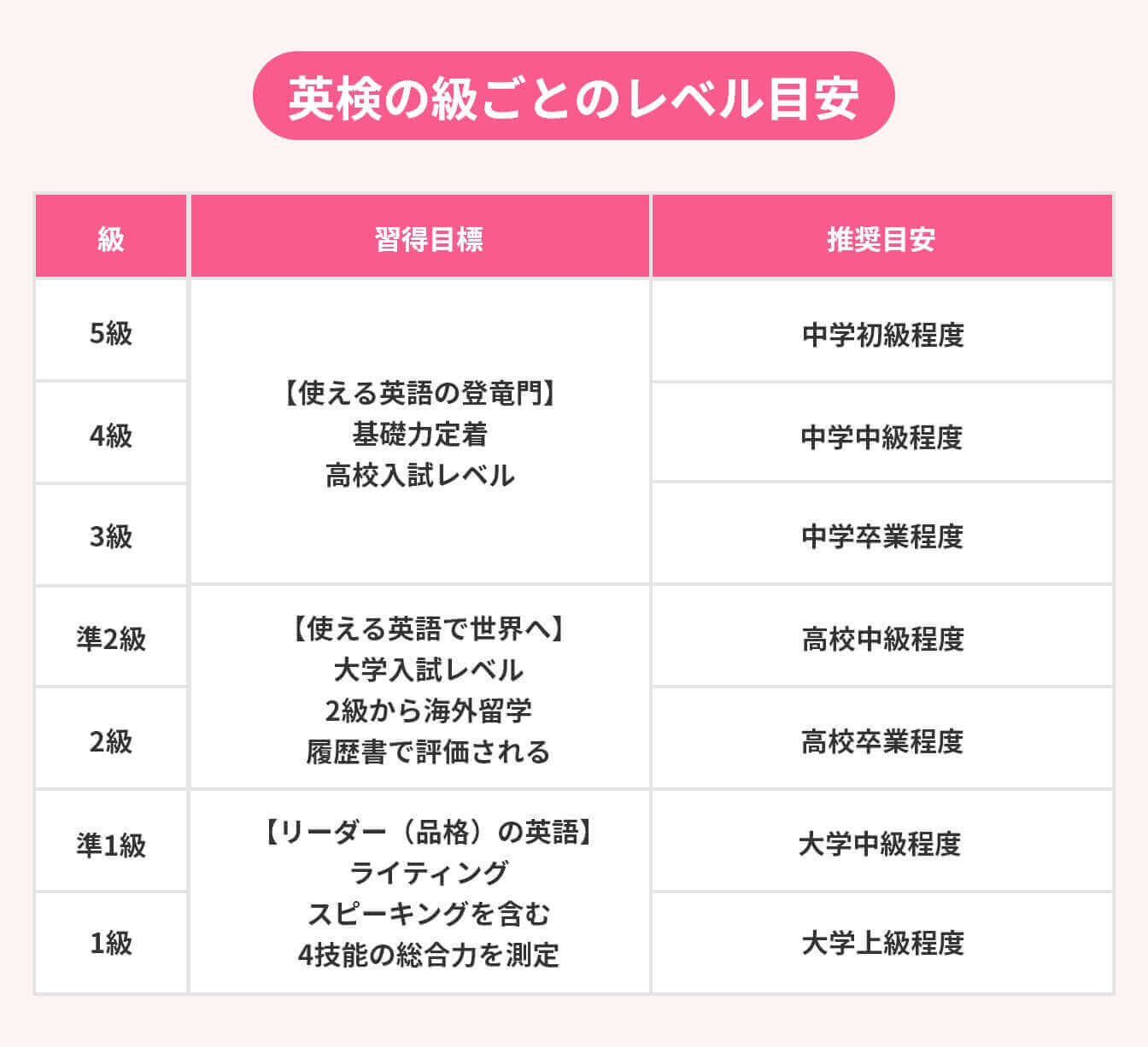 - 英検2級・1級:より高度な英語力を証明し、就職活動や転職に有利。