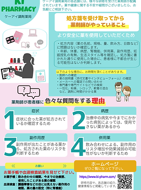 - 患者が薬物療法について適切に理解し、適切に服用できるように情報提供を行なう。