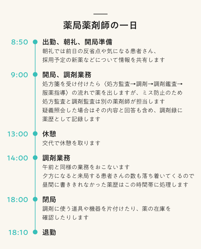 処方箋に基づいた薬剤の調剤 | 患者との直接的な接触が多い |