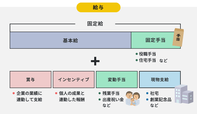 - 給与は月単位で支払われる定期的な報酬。