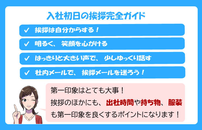 転職初日の挨拶では、以下のポイントに注意することが重要です。