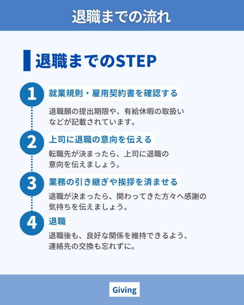 - 引継ぎ作業や最終的な業務の整理に十分な時間を確保する