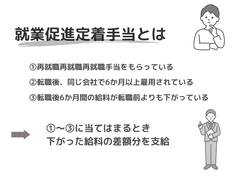 転職補助金は、再就職後の<給料>が前の職場と比べて減少した場合、その差額を補填するための制度です。具体的には、以下の3つの補助金が主なものです: