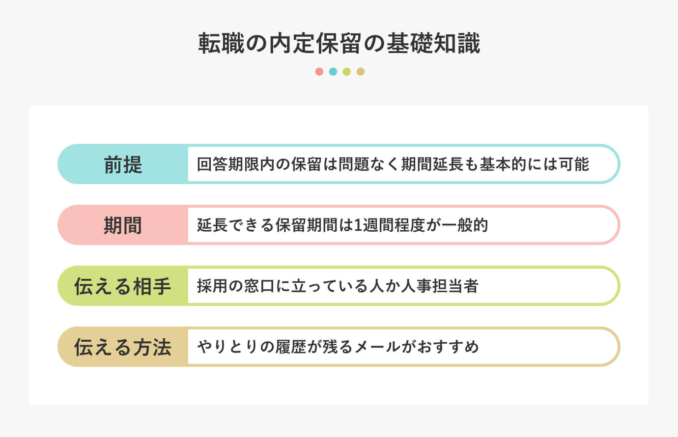 内定の保留期間について交渉する際の方法は以下の通りです: