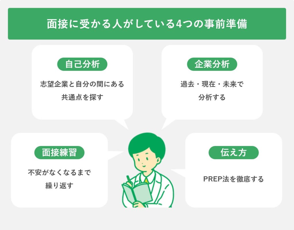 • 面接での不足点を洗い出し、次回の面接に向けて改善する