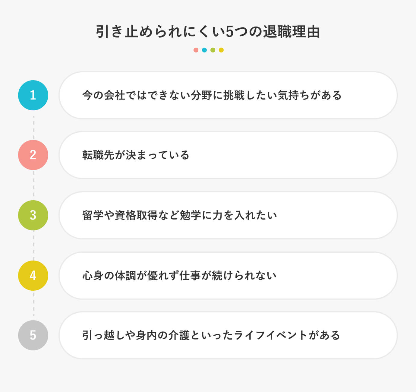 - 引き止めの申し出に対して、自分の意思をはっきりと伝え、揺らがないようにする