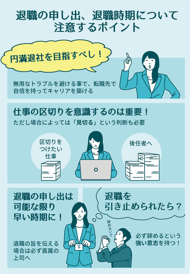 - 会社の対応:会社が退職の影響を最小限に抑えるための対策を講じることができます。