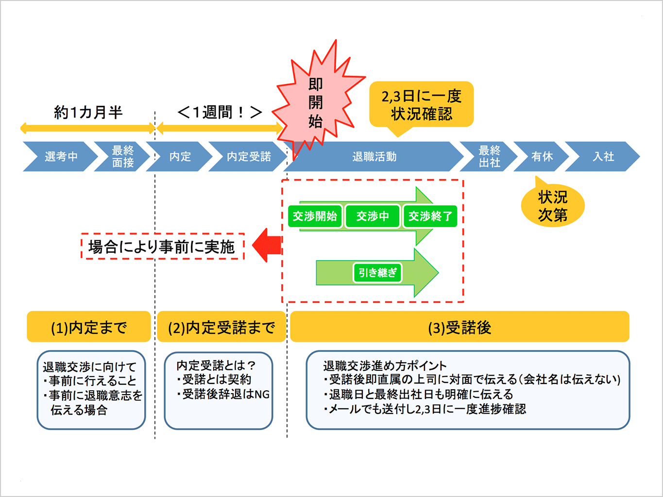 3. 適切なタイミングを見計らい、急な退職が会社に与える影響を最小限に抑えるように努める。