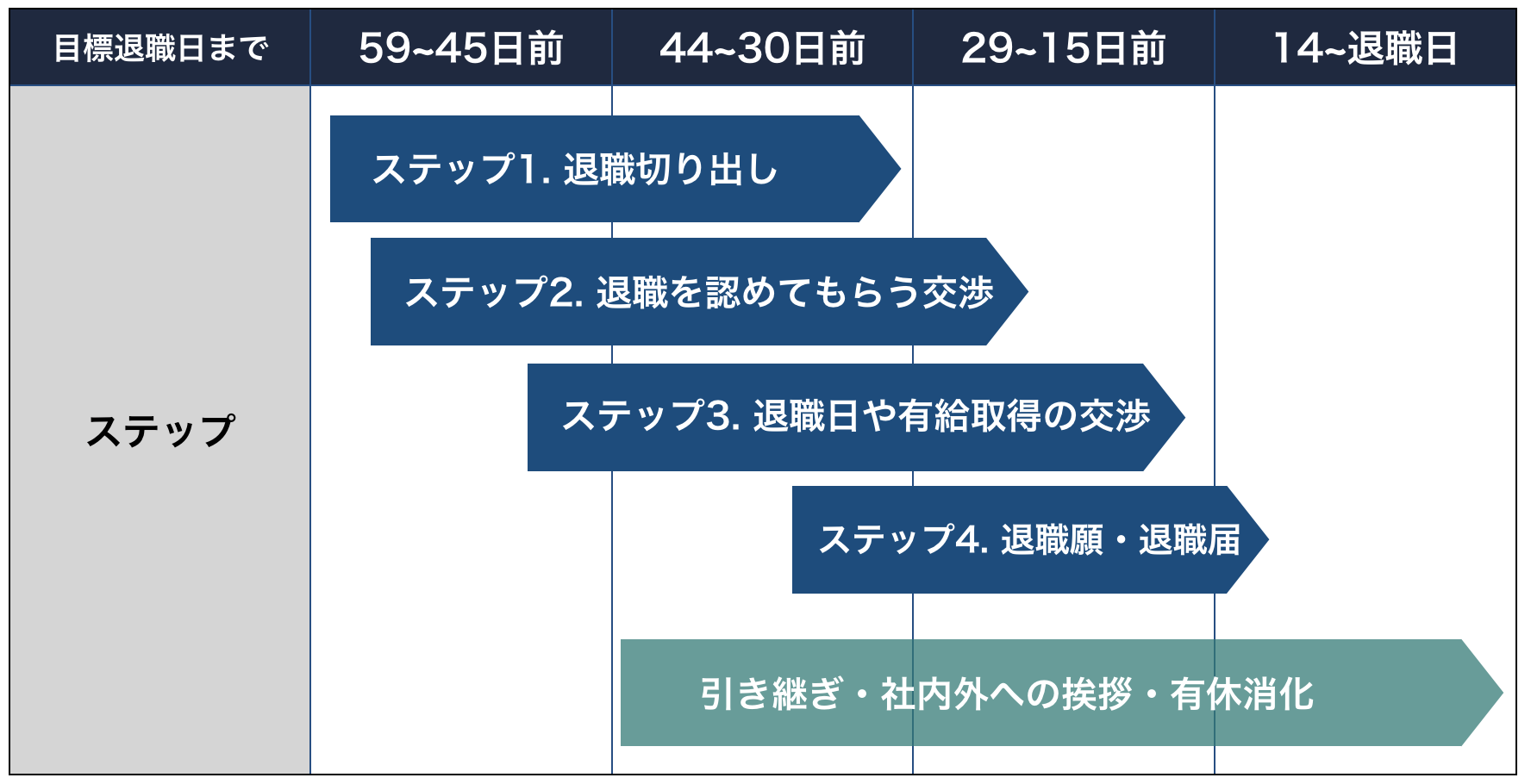 - 退職日を設定する:希望の退職日を設定し、可能であれば数日間の余裕を見込む。
