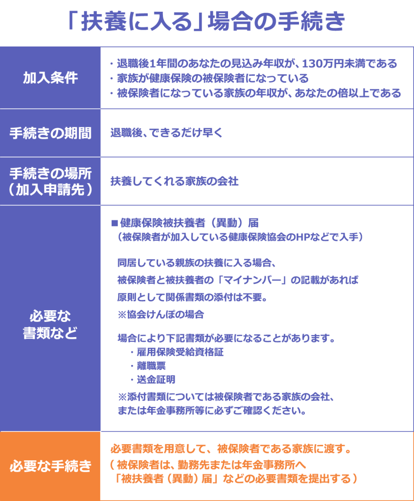 扶養に入るためには、以下の書類と手続きが必要です。