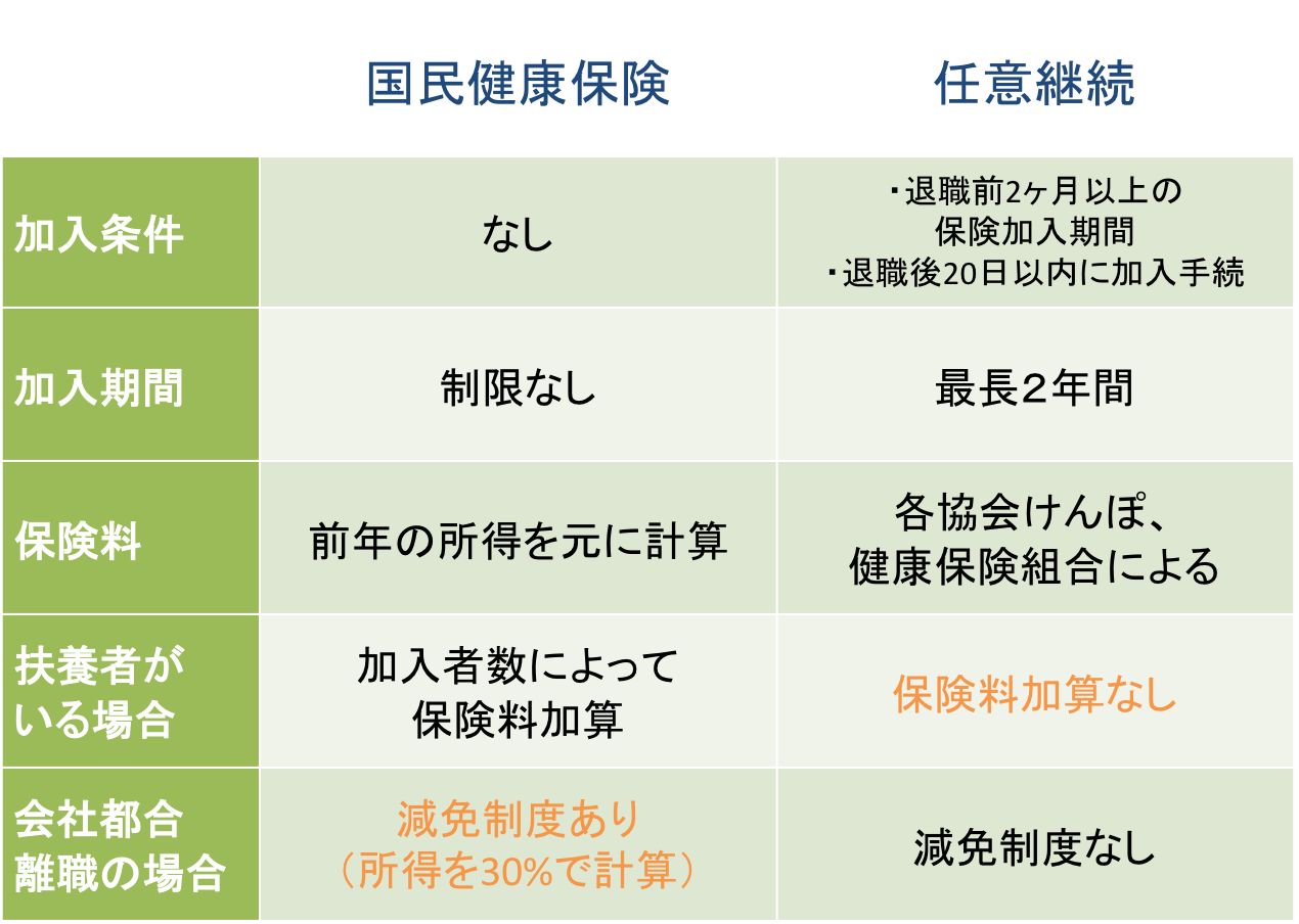 国保と任意継続の主な違いは、保険料の計算方法と負担割合です。以下に、具体的な比較ポイントを示します。