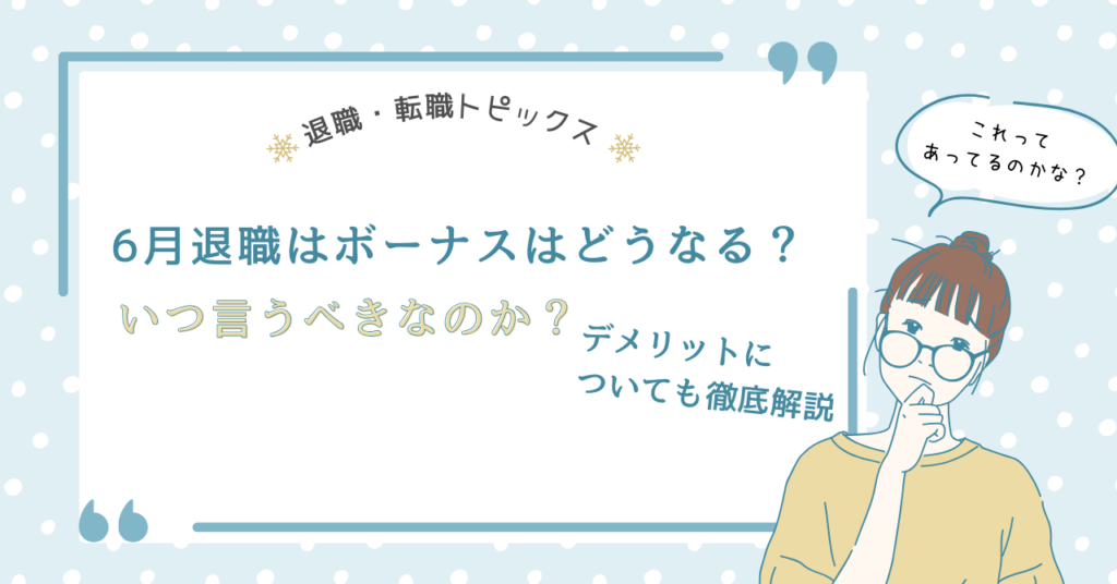 - ボーナスの支給基準日が6月30日である場合、6月30日までに退職するとボーナスが支給されないことが多いです。