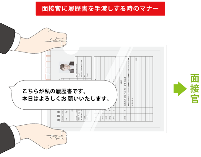 提出のタイミング | 面接開始前に受付で提出または最初の面接官に手渡す |