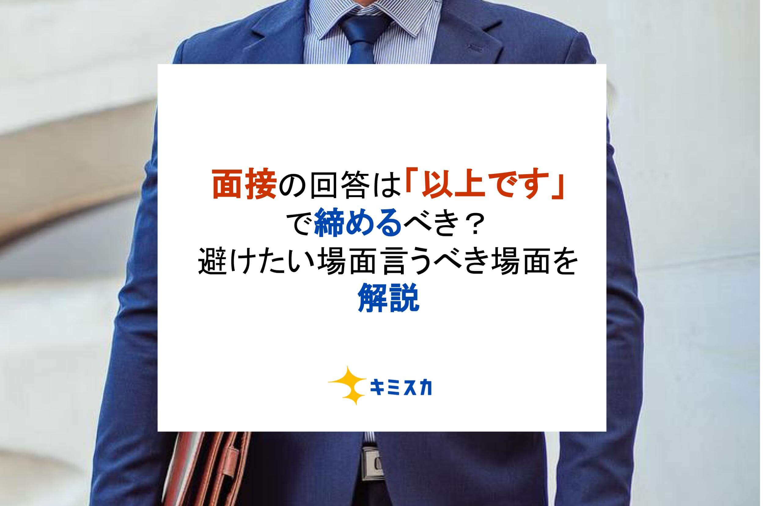 「以上です」は、面接の最中に自己紹介や回答の区切りで使う場合があります。例えば、自己紹介の最後や、複数の質問に対する回答の最後に、「以上でよろしいでしょうか」や「以上です」を使うことで、明確な区切りを作ることができます。しかし、面接の最後では、より丁寧な表現を使用するのが望ましいです。面接官とのつながりを維持しつつ、適切に締めくくることが重要です。