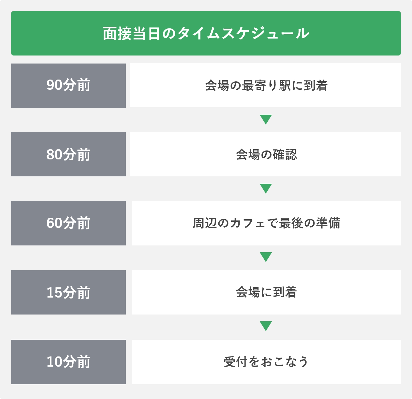 3. 事前準備の充実:面接当日の前日に十分な休息を取ることや、面接会場までの経路を事前に確認することで、時間の管理を万全にします。