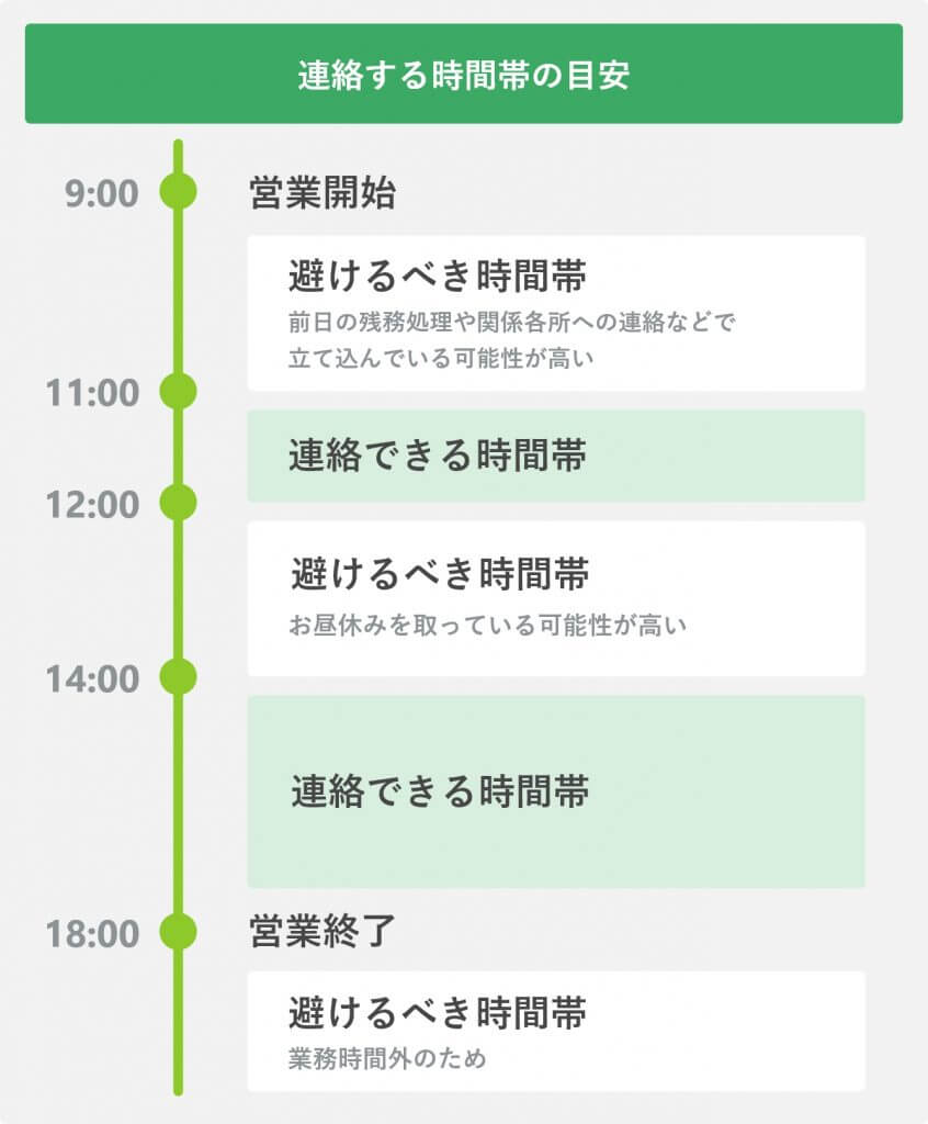 - 時間帯:企業の営業時間内、特に午前中や午後の早いうちに電話をかけることをおすすめします。