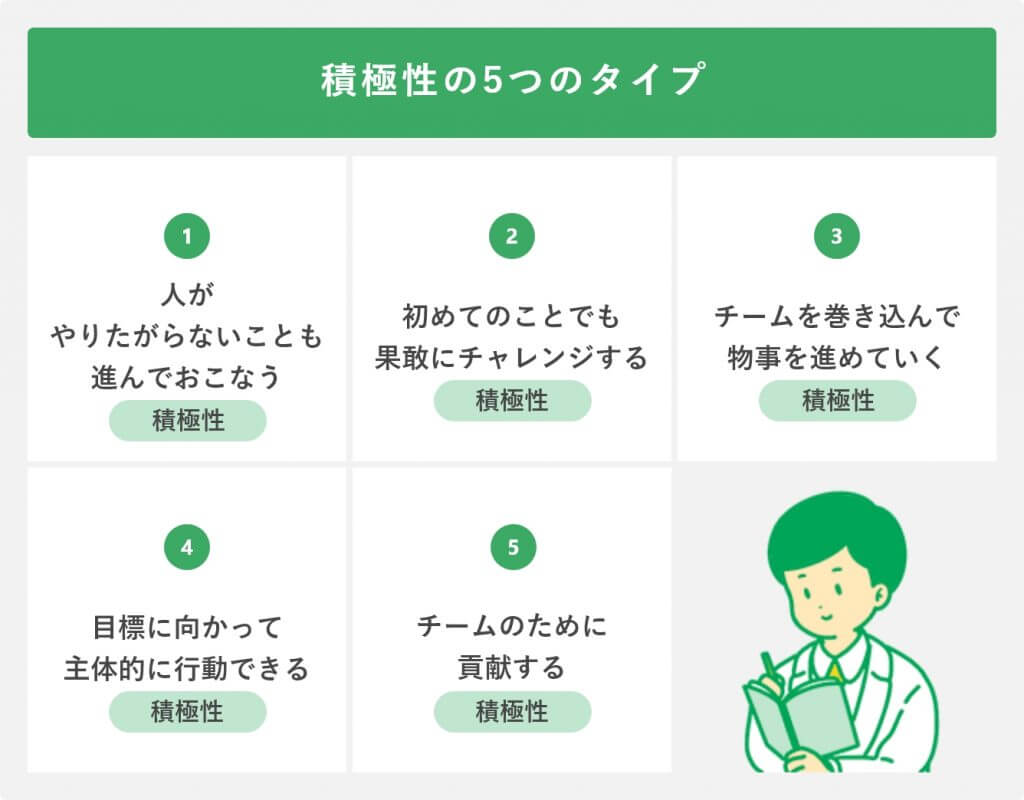 自己PRで積極性を示す具体的な行動例を挙げると、以下のようになります。