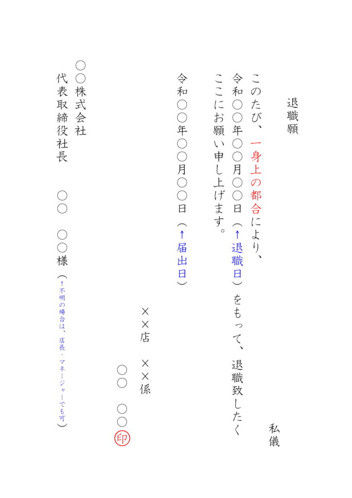 パートの退職願の退職理由は何と書きますか?